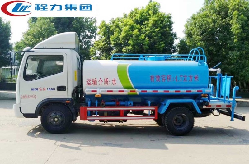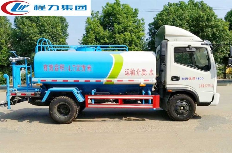 罐體有效容積5立方,罐體采用國標Q235碳鋼,罐體厚度4mm,自吸自排水泵,帶前沖裝置,后灑裝置,左右側噴裝置,尾部帶有安全操作平臺,帶消 防接口,自流口,兩根輸水管,尾部綠化高炮,綠化高炮可調節(jié)直沖,大雨,中雨,毛毛雨霧,可以連續(xù)調節(jié),360度旋轉;