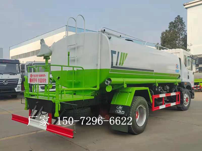 罐體采用4mmQ235優質碳鋼板制作,容積12-15立方,前沖(噴)后灑,帶側噴,罐體后帶工作平臺,平臺上安裝綠化灑水炮,灑水炮可全方位旋轉,可連續調成直沖狀、大雨、小雨、毛毛雨,帶安全護欄,配備全國質量評比第一名的億豐大功率專用灑水泵,泵可自吸自排,安裝過濾網,帶消防接口,可通過消防栓進水,帶自流閥,罐體金屬漆。 隨車提供:車輛合格證、底盤合格證、機動車上戶發票、保修手冊、使用說明書、隨車工具等。