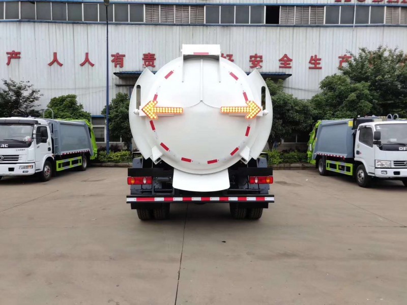 圓形碳鋼罐體,罐體厚度5mm,拉桿提升機(jī)帶上蓋聯(lián)動;后蓋液壓開啟;罐體舉升自卸。選裝內(nèi)軒推鏟卸料,帶渣液分離功能。餐廚垃圾車可分罐式和廂式。
