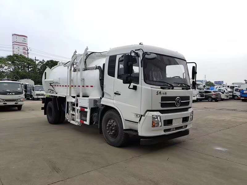 東風(fēng)天錦餐廚垃圾車,搭配康明斯180馬力國五發(fā)動機(jī),東風(fēng)六檔箱,9.00R20鋼絲胎,軸距4500mm,原廠空調(diào),正規(guī)東風(fēng)GB7258-2017新規(guī)底盤;上裝采用Q345高強(qiáng)度錳鋼板或304不銹鋼罐體制作,罐體容積:10立方米,大流量液壓泵,大流量手自一體多路換向閥,可編程PLC電控系統(tǒng)帶無線遙控器操作,污水廂,帶壓縮擠壓功能,帶清洗泵自潔系統(tǒng),后蓋液壓開啟,后蓋帶液壓鎖緊并具有防誤操作。