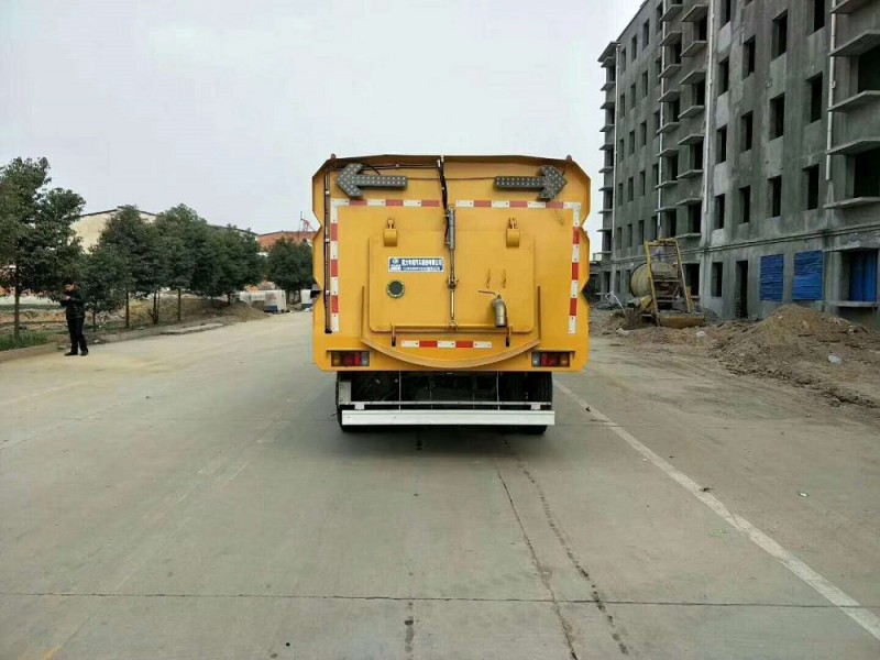 德國進口高壓泵(前沖/側噴/中噴/后噴霧/沖洗水槍/垃圾箱自潔裝置),水過濾器,管路,不銹鋼噴架,高壓噴嘴,清吸降塵左右前掃盤,吸塵吸盤,帶2個中置掃盤,LPC電子控制,一鍵操作,尾部廂體外觀為方形豪華型,日本三洋馬達;萬向高壓路沿清洗噴頭,威龍低壓泵(前沖);不銹鋼管高壓管路;德國控制器, PLC一鍵控制;尾部LED箭頭燈;副機轉速表、副機水溫表、機油溫度報警裝置、各種操作控制開關;倒車及洗掃狀態室內監視器。18m高壓沖洗卷盤。清洗壓力10MPa;吸入顆粒度:≥100mm。