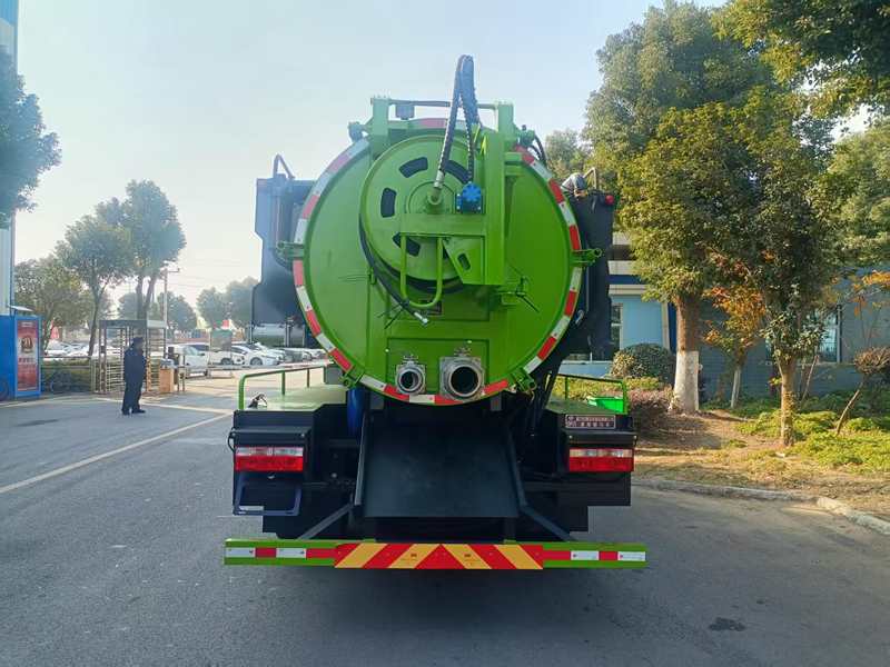 高壓部分配置:罐體采用對接工藝焊接,水罐采用武鋼優質4mm鋼板制作,按國家標準制造。品孚高壓泵:壓力20bar ,流量255L/MIN 夾心取力器驅動。100米¢19高壓管,10個標配噴頭,贈送一根洗車長噴桿,一個4.5KG水雷噴頭,耐高壓250bar。以滿足不同狀況管道疏通,帶高壓泵冬季氣吹裝置。(清水3.5方,污水9方,水污互通)